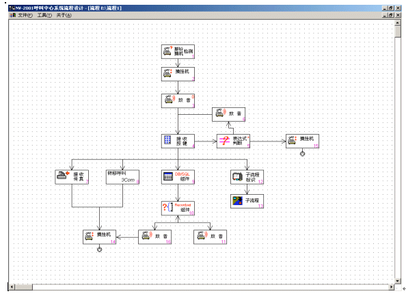 NV-IVR是一個使用方便、功能強大支持持續(xù)開發(fā)的開放式產(chǎn)品。NV-IVR運用圖形化按鈕,直觀顯示各個子模塊的主題,使用者只要通過簡單的拖曳、配置就可以生成一棵樹狀流程圖,直觀地對照IVR的實際運行流程。用戶需要對實際流程進行修改,只須對流程圖修建即可。NV-IVR可以完成以下一些主要功能: