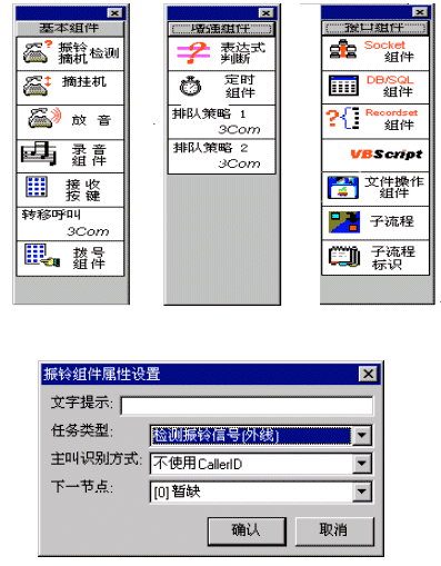 IVR:兩種方案的呼叫中心,目前的IVR系統(tǒng),均采用計算機語音卡方式進行集成。這些語音板卡,既可以采用目前流行的板卡,也可以采用自行設(shè)計的板卡。利用廠商提供的API接口,開發(fā)者可以編寫各種語音流程業(yè)務(wù)。PBX交換機方案的IVR一般由PBX廠家作了主要的功能開發(fā),使用者只須應(yīng)用、配置。基于語音板卡的呼叫中心一般板卡廠家提供API接口,開發(fā)者應(yīng)用開發(fā)的靈活性較大。