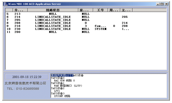 NBX呼叫中心的核心設(shè)備是3Com公司的NBX網(wǎng)絡(luò)交換機,NBX網(wǎng)絡(luò)交換機支持開放式電話開發(fā)平臺TAPI2.X,TAPI它是Microsoft電話技術(shù)應(yīng)用程序編程界面標(biāo)準,運用TAPI可以方便、高效地完成針對語音線路的控制開發(fā),從而完成自動語音應(yīng)答(IVR)、自動話路分配(ACD)、以及坐席接待、計費、錄音等需求。使用TAPI這種標(biāo)準使得用戶可以集成第三方CTI程序以完成各種高級需求。