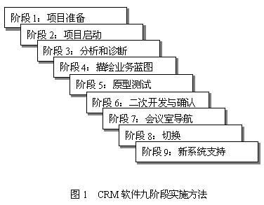 CRM軟件產(chǎn)品本質(zhì)上是面向企業(yè)前臺應(yīng)用的管理信息系統(tǒng)。其本身就蘊含了CRM的管理思想和先進的信息技術(shù)。與ERP系統(tǒng)的實施類似,CRM軟件系統(tǒng)的實施過程遵循了項目管理的科學(xué)方法。