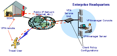 在本方案中,VPN設(shè)備選用Avaya公司的VPN系列網(wǎng)關(guān)產(chǎn)品,網(wǎng)絡(luò)中心使用VSU-2000實(shí)現(xiàn)高速的數(shù)據(jù)交換以滿足需要。VPN設(shè)備和移動(dòng)用戶的管理采用VPNManager和VPNRemote軟件來完成。VPNManager能夠?qū)崿F(xiàn)對(duì)整個(gè)VPN網(wǎng)絡(luò)進(jìn)行管理,滿足用戶認(rèn)證、加密策略的制定和修改等等重要工作。VPNRemote安裝在移動(dòng)用戶的計(jì)算機(jī)上,為用戶提供在任何地點(diǎn)只需接入任意一個(gè)ISP即可建立VPN連接的功能,充分滿足移動(dòng)用戶的的需要。企業(yè)網(wǎng)絡(luò)中心不再需要建立撥入服務(wù)系統(tǒng)為遠(yuǎn)程用戶提供撥入服務(wù)。