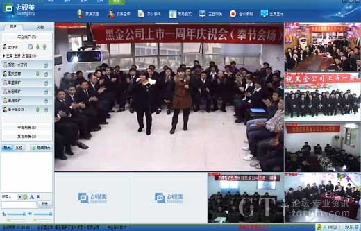 首先,飛視美為總部及5個(gè)辦事處分別安裝了飛視美視頻會(huì)議軟件,將慶典場(chǎng)地劃分為1個(gè)主會(huì)場(chǎng)和5個(gè)分會(huì)場(chǎng),總部與分支機(jī)構(gòu)的員工都在當(dāng)?shù)貐⒓討c典,通過(guò)飛視美進(jìn)行在線演講與總結(jié)、相互問(wèn)候、相互祝福、表演節(jié)目、進(jìn)行互動(dòng)游戲等,這是一種“高科技互動(dòng)”。其次,為了達(dá)到更好的視頻溝通效果,飛視美為黑金實(shí)業(yè)量身定制了一套硬件設(shè)備方案。根據(jù)各會(huì)場(chǎng)的面積、參與人數(shù)等情況,提供了一整套硬件參考:包括攝像設(shè)備、音響設(shè)備、功效設(shè)備等,并派出技術(shù)團(tuán)隊(duì)專門(mén)赴重慶為客戶進(jìn)行設(shè)備搭建和調(diào)試,保障了此次慶典的最佳效果。