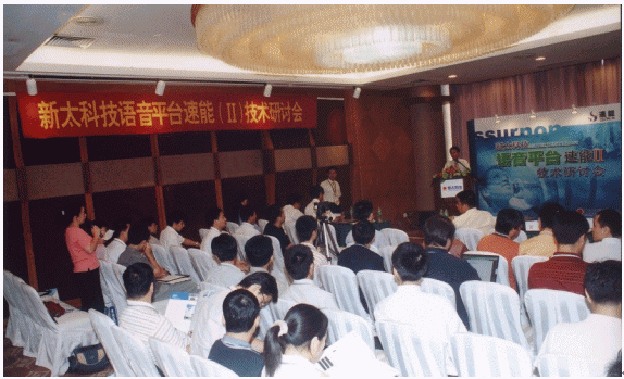 7月23日,新太科技在廣州花園酒店舉行"語音平臺速能II技術(shù)研討會"。新太科技執(zhí)行總裁梁平、副總裁何健明,開發(fā)中心副經(jīng)理張少文,營銷中心國際業(yè)務(wù)部副總經(jīng)理馬任遠、產(chǎn)品經(jīng)理黃偉,新太科技合作伙伴Intel公司通訊產(chǎn)品業(yè)務(wù)部戰(zhàn)略客戶經(jīng)理林競宇,新太語音平臺速能產(chǎn)品核心代理商--廣州納特威科技公司總經(jīng)理黃淡輝,渠道總代理商--深圳意科特實業(yè)有限公司總經(jīng)理李面換等到會并作主題發(fā)言!吨袊嬎銠C報》、《計算機世界》、《SP計算機產(chǎn)品與流通》、IT168共四家專業(yè)媒體記者到會采訪。