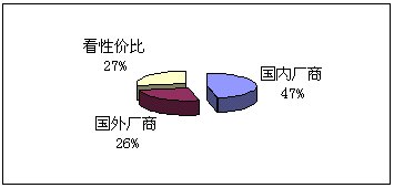 。5)向誰購買:鑒于國內(nèi)并沒有知名度很高的CRM實施廠商,而國外的著名廠商在國內(nèi)的品牌宣傳也不足,所以我們的調(diào)查表中只設(shè)了:國內(nèi)廠商、國外廠商和根據(jù)性價比進(jìn)行選擇三個項目,與購買能力對照,預(yù)期實施金額在100萬以下的企業(yè),一般側(cè)重國內(nèi)廠商,而實施金額在100萬以上企業(yè)則側(cè)重國外企業(yè)。