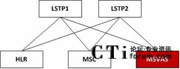 MSVAS平臺可以通過七號信令網(wǎng)與移動核心網(wǎng)中的各個網(wǎng)元進行對接,如與七號信令網(wǎng)中的LSTP進行對接,通過ISUP、TUP以及MAP對核心網(wǎng)中HLR、MSC、短信中心等網(wǎng)元進行訪問,實現(xiàn)移動管理(位置查詢)、呼叫處理(主要是獲取路由信息)、業(yè)務登記、短消息業(yè)務等功能,其連接方式如下圖所示: