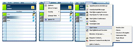 圖5:我們在統(tǒng)一的界面下實現(xiàn)了IM、協(xié)同工作(白板)、電視和游戲等。