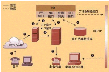 CTI (Computer Telephony Integration 計(jì)算機(jī)電信集成) 技術(shù)將計(jì)算機(jī)網(wǎng)和電話網(wǎng)連接在一起,把語(yǔ)音和數(shù)據(jù)服務(wù)集成為一體,使得構(gòu)造數(shù)據(jù)和語(yǔ)音的融合應(yīng)用得以實(shí)現(xiàn)。例如,由于CTI技術(shù)的引入,當(dāng)用戶來(lái)話時(shí),呼叫中心能根據(jù)用戶的呼叫信息如ANI(主叫號(hào))結(jié)合數(shù)據(jù)庫(kù)迅速地識(shí)別用戶,實(shí)現(xiàn)“彈屏”功能;當(dāng)電話轉(zhuǎn)接時(shí),實(shí)現(xiàn)語(yǔ)音數(shù)據(jù)的同步轉(zhuǎn)移;根據(jù)所獲得的客戶信息及其他相關(guān)信息將來(lái)話路由到最適合服務(wù)的座席等。CTI技術(shù)包含了數(shù)據(jù)通信與語(yǔ)音通信兩大部分的內(nèi)容,關(guān)注的不僅僅是將基于計(jì)算機(jī)的智能技術(shù)運(yùn)用到電話的發(fā)送、接收及管理,還要考慮各種媒體類型的信息傳送,包括實(shí)時(shí)信號(hào)和非實(shí)時(shí)信號(hào),如傳真、電子郵件和視頻信號(hào)等。