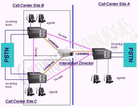 圖4 采用Interaction Director模塊的分布式呼叫中心系統(tǒng)結(jié)構(gòu)示意圖