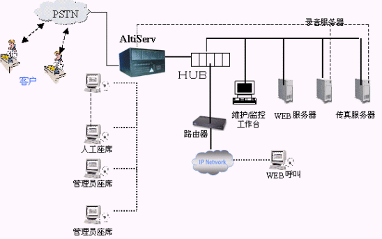 海南南山觀音苑旅游采用的是奧迪堅(jiān)呼叫中心平臺AltiServ,將交換機(jī)系統(tǒng)、排隊(duì)系統(tǒng)、IVR系統(tǒng)、CTI系統(tǒng)、FAX系統(tǒng)和錄音系統(tǒng)高度有機(jī)的整合在一起,電話接入方式采用800中繼線接入方式,統(tǒng)一的一個(gè)電話號碼就可以為包括省內(nèi)、省外、國際游客提供親切的服務(wù)。該服務(wù)中心采用電話自動(dòng)查詢和人工應(yīng)答方式代替,能夠提供7*24小時(shí)服務(wù),專門座席工作人員,在系統(tǒng)數(shù)據(jù)庫的支持下,工作人員接聽電話的同時(shí),奧迪堅(jiān)特色的POP-Screen功能可以實(shí)現(xiàn)座席人員面前的電腦顯示屏中顯示出該客人的電話號碼、姓名、單位、地址等詳細(xì)資料,為游客提供針對性的專業(yè)咨詢服務(wù)。值得一提的IP技術(shù)在海南南山觀音苑客戶服務(wù)中心中的應(yīng)用,奧迪堅(jiān)在傳統(tǒng)呼叫中心的基礎(chǔ)上增加了WEB