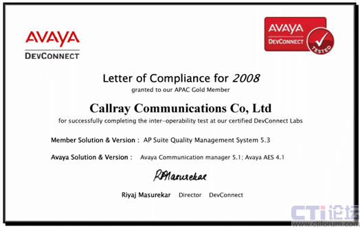深圳市友鄰?fù)ㄓ嵲O(shè)備有限公司的AP Suite呼叫中心質(zhì)量管理系統(tǒng)經(jīng)過測(cè)試,通過了AVAYA DevConnect 的認(rèn)證。