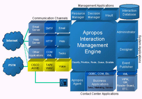 作為全球領(lǐng)先的CTI產(chǎn)品,Apropos可以管理所有類型的客戶交互,包括電話、傳真、E-Mail、Web Request、Web Chat、SMS(短消息)、VoiceMail、OutBound、VoIP等,