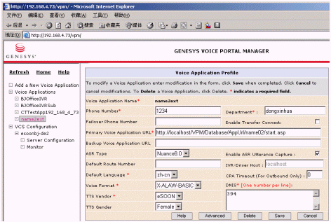 VPM采用了靈活的基于Web頁面的方式,在遠程可以對GVP用到的組件進行配置,對GVP的運行情況進行監(jiān)控,查看GVP運行的實時報表以及發(fā)布語音應用。VPM可以和VCS安裝在同一臺服務器上,當系統(tǒng)中有多個VCS時,建議將VPM安裝在一個獨立的服務器上。