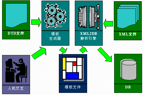 除了直接采用軟件包中包括的兩個(gè)圖形化工具以外,用戶還可以根據(jù)自己的需要用xml2db.jar提供的接口來開發(fā)自己的應(yīng)用程序、中間件或Javabean組件等。