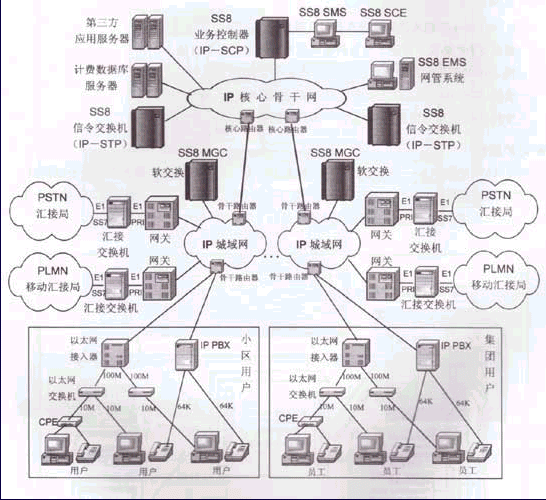 SS8是一個(gè)能夠提供IP網(wǎng)上端對(duì)端的IP電話業(yè)務(wù)的軟硬件系統(tǒng)產(chǎn)品,一套滿配置的SS8系統(tǒng)可以構(gòu)建橫跨全球范圍數(shù)千萬用戶的IP語音通信網(wǎng)。