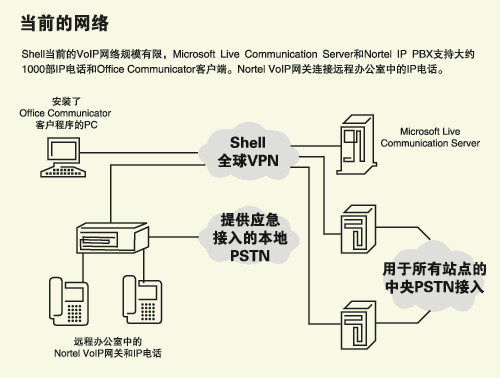 過(guò)去購(gòu)買和部署系統(tǒng)一直由本地Shell辦事處和子公司做出決定。這就使Shell公司內(nèi)部的通信系統(tǒng)變得五花八門,難以駕馭。而集中式VoIP系統(tǒng)將避免這樣的作法。