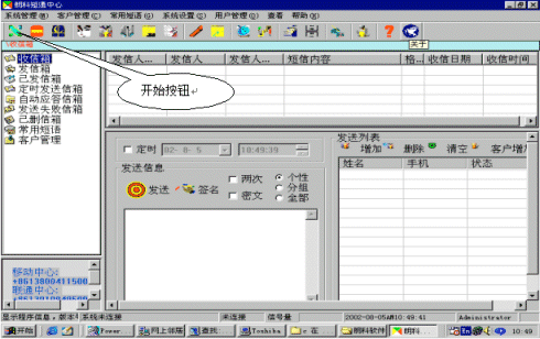 如果沒有上述兩個畫面,則應雙擊桌面的前臺和后臺圖標,用以啟動該程序,也可以選擇"開始" --》廣播短信平臺--》前臺(后臺)實現啟動。