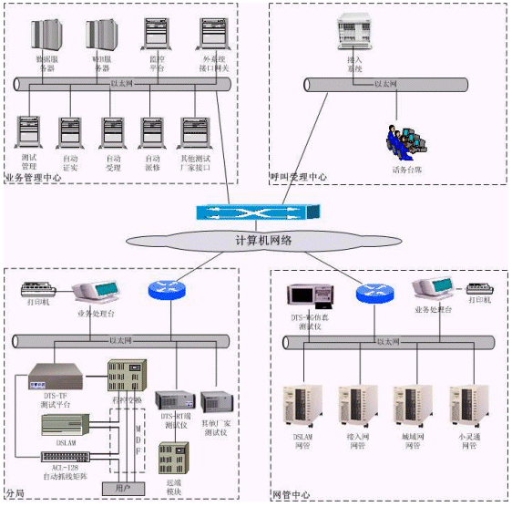 ·DTS-TF大容量測試平臺實現(xiàn)對多種不同交換機類型的外部測試及模塊局仿真測試;DTS-ADSL測試儀,實現(xiàn)ADSL開通之前的線路評估測試、ADSL開通之后的日常例行測試和ADSL故障立即測試;DTS-WG仿真測試儀,通過網(wǎng)管協(xié)議實現(xiàn)對接入網(wǎng)、LAN城域網(wǎng)、PHS小靈通等設(shè)備的故障定位;ACL-128自動抓線矩陣,提供128端口的自動抓線,級聯(lián)可達32,768條線路。