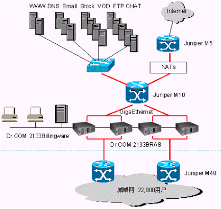 目前寬帶網(wǎng)上對用戶認證計費的技術手段有三種,一是二層的PPPOE技術,二是二、三層通用的WEB認證技術。三是運用隧道技術的L2TP。三種技術各有千秋,小區(qū)運營商應該根據(jù)自己網(wǎng)絡的特點和投資情況審慎選擇。比較一致的看法是采用ADSL接入方式的運營商必須選用PPPOE技術,采用FTTB+LAN接入方式的運營商則必須選擇非PPPOE技術,三層的WEB認證技術是最省錢也是最易行的解決方案。為了說明這個問題,下面我們結(jié)合一個寬帶網(wǎng)絡實例,將Dr.COM的三層認證技術與PPPOE作一個對比。