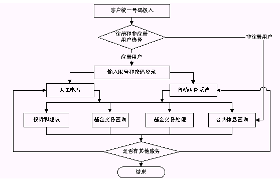 基金客戶服務(wù)呼叫中心系統(tǒng)的總體目標(biāo)是建立一個(gè)統(tǒng)一面向投資者的多媒體呼叫中心平臺(tái),通過統(tǒng)一的特服號(hào)接入,實(shí)現(xiàn)統(tǒng)一的用戶服務(wù)界面,統(tǒng)一的熱線功能和統(tǒng)一的基金業(yè)務(wù)標(biāo)準(zhǔn),集中受理投資者對(duì)基金業(yè)務(wù)的需求,為投資者提供基金綜合性服務(wù)的無形窗口。系統(tǒng)以基金綜合業(yè)務(wù)系統(tǒng)為支撐,實(shí)現(xiàn)數(shù)據(jù)共享,完成業(yè)務(wù)咨詢、業(yè)務(wù)受理、業(yè)務(wù)查詢和客戶投訴等四大功能的一體化的處理與管理。