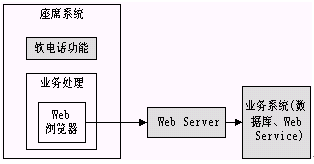 從上圖可以看出,座席端所有的業(yè)務(wù)處理都是在Web瀏覽器上進(jìn)行的,所以無論是利用原有系統(tǒng)還是新開發(fā)系統(tǒng),用戶都不必要關(guān)心座席的具體實(shí)現(xiàn)方式,要做的僅僅是編寫新的JSP,ASP等可訪問后臺(tái)業(yè)務(wù)的Web頁面,然后進(jìn)行簡(jiǎn)單的配置就可以完成業(yè)務(wù)的擴(kuò)充功能。