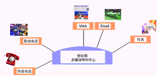 勞動局多媒體呼叫中心系統(tǒng)支持的通訊方式包括:電話、傳真、手機、電子郵件、因特網(wǎng)服務、短消息等多種通訊媒介。