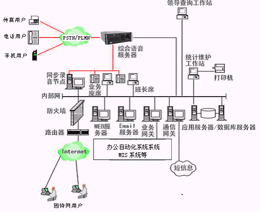 一期工程的語音接入設備:未定,提供排隊交換機方式,語音板卡方式,智能型可編程交換機方式,以便供選擇。建議采用智能型可編程交換機方式。