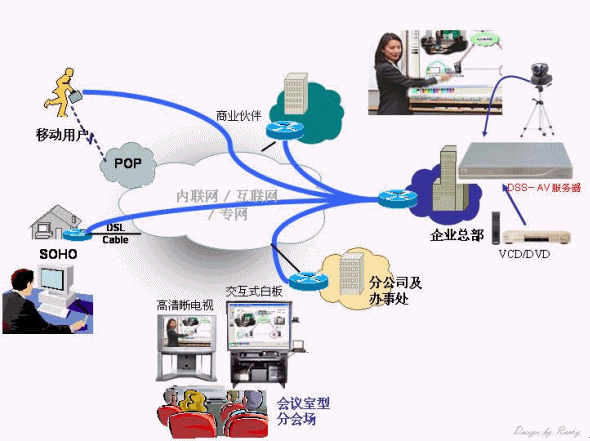 | 對(duì)使用環(huán)境要求低 | 客戶端只收看主視頻最低配置CPU為PIII以上可滿足要求;做數(shù)據(jù)及語(yǔ)音系統(tǒng)使用時(shí)無(wú)特別要求;對(duì)網(wǎng)絡(luò)要求,一路視頻只須128Bps,ADSL上網(wǎng)可支持。 |