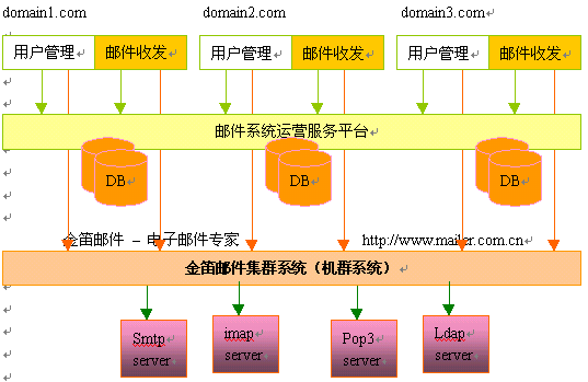 金笛郵件系統(tǒng)五大功能模塊邏輯關(guān)系圖