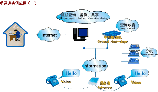 錄音記錄應(yīng)當(dāng)能夠方便地通過多種途徑回放,實(shí)現(xiàn)對(duì)錄音記錄資料的利用,這也是用戶配置電話錄音系統(tǒng)的最主要目的;胤趴梢酝ㄟ^我們公司開發(fā)生產(chǎn)的選件手持播放器回放,通過網(wǎng)絡(luò)回放,通過聲卡在其它計(jì)算機(jī)上回放等多種方式來實(shí)現(xiàn)。