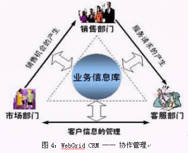 企業(yè)的銷售、服務(wù)和市場業(yè)務(wù)有一個共同的特點,就是都與客戶打交道,都是以"客戶為中心"開展業(yè)務(wù)的。面對共同的客戶,需要共享相同的客戶信息。與此同時,各部門的業(yè)務(wù)也不是孤立的,而是在互動的過程中相互促進,共同提升。WebGrid CRM系統(tǒng)根據(jù)CRM理念而設(shè)計,將銷售、市場和服務(wù)業(yè)務(wù)進行整合,提供了統(tǒng)一的操作平臺,實現(xiàn)了業(yè)務(wù)信息的共享。此外,WebGrid CRM制定了靈活的工作流程,實現(xiàn)了各個業(yè)務(wù)部門之間的信息交互:由市場活動可以生成銷售機會;服務(wù)過程中的銷售意向也可以通過反饋提交到銷售部門中去……WebGrid CRM的這一功能消除了市場、銷售和服務(wù)各部門之間的信息孤島,將三個部門緊密結(jié)合,形成一個有機的整體,從而提升了企業(yè)整體的運營效率。