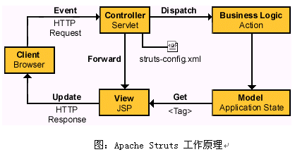 WebGrid CRM在技術(shù)實現(xiàn)上采用Sun公司的標準的MVC(Model-View-Controller)三層體系進行架構(gòu),主要通過在Apache公司開發(fā)的Struts Framework的基礎(chǔ)上進行應(yīng)用擴展,參見下圖結(jié)構(gòu):