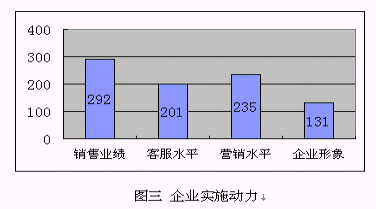 3) 提升企業(yè)形象:很多受訪企業(yè)特別是服務(wù)業(yè),已經(jīng)建立客戶忠誠度放在了很重要的位置,但比較其它幾個直接動因,比例偏低,這也說明"以客戶為中心"的觀念還沒有"以利潤為中心"強烈。
