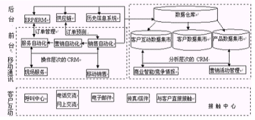 在企業(yè)中對于客戶關(guān)系資源管理方面可歸納為兩個方面的問題。其一,企業(yè)的銷售、營銷和客戶服務(wù)部門難以獲得所需的客戶互動信息。其次,來自銷售、客戶服務(wù)、市場、制造、庫存等部門的信息分散在企業(yè)內(nèi),這些零散的信息使得無法對客戶有全面的了解,各部門難以在統(tǒng)一的信息的基礎(chǔ)上面對客戶。這需要各部門對面向客戶的各項信息和活動進行集成,組建一個以客戶為中心的企業(yè),實現(xiàn)對面向客戶的活動的全面管理。