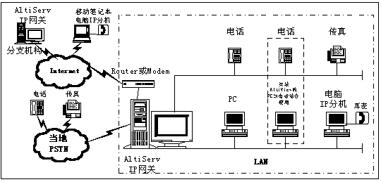 -  IP分機——IP分機功能允許將H.323兼容終端設備連接到AltiServ。IP分機具有與模擬分機相同的功能。IP分機可以是IP話機、電腦或電腦加模擬話機。
