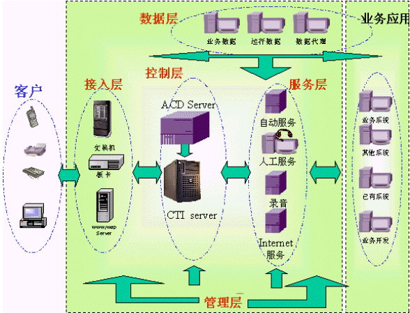 將PSTN訪問、Internet訪問有機(jī)結(jié)合,對傳統(tǒng)呼叫中心進(jìn)行擴(kuò)充,支持多種接入方式,多種交流渠道,具有傳統(tǒng)呼叫中心無法比擬的優(yōu)越性。