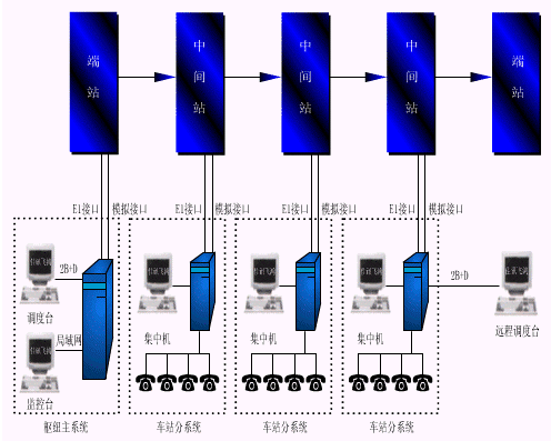 北京佳訊飛鴻通信技術(shù)有限公司在充分調(diào)研的基礎(chǔ)上,推出了飛鴻98鐵路數(shù)字專用通信系統(tǒng),以一套數(shù)字化的設(shè)備替代原有模擬調(diào)度系統(tǒng)、專用電話系統(tǒng)、集中機(jī)和區(qū)轉(zhuǎn)機(jī)等多種模擬設(shè)備,實現(xiàn)鐵路專用通信的所有基本功能,同時利用數(shù)字化的傳輸通道和數(shù)字化的技術(shù),實現(xiàn)整個調(diào)度區(qū)間內(nèi)所有設(shè)備的集中監(jiān)控、遠(yuǎn)程維護(hù)、故障診斷、環(huán)境動力監(jiān)測等等維護(hù)管理功能,大大方便了維護(hù)檢修工作,使其維修方式可由過去的預(yù)防修模式轉(zhuǎn)變?yōu)楝F(xiàn)代的狀態(tài)修方式,可在不中斷通信的情況下對系統(tǒng)進(jìn)行維護(hù),極大的提高了系統(tǒng)的安全可靠性。同時系統(tǒng)兼容原有模擬調(diào)度實回線,沒有數(shù)字通道的車站也可通過模擬實回線接入系統(tǒng)。