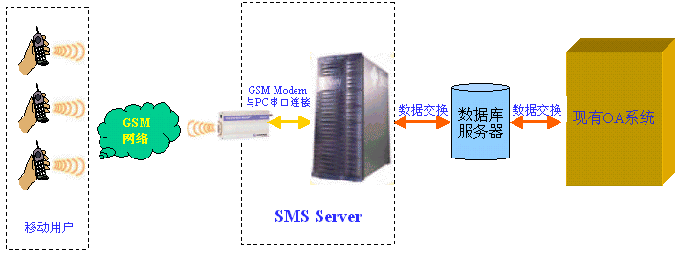 針對以上可能的應(yīng)用,我公司研發(fā)出了企業(yè)短信服務(wù)器這一產(chǎn)品。如果您的企業(yè)應(yīng)用了這個產(chǎn)品,就相當(dāng)于在企業(yè)中建立了一個類似移動運(yùn)營商的短信中心,這樣,企業(yè)可以利用此產(chǎn)品與您的OA系統(tǒng)、CRM系統(tǒng)、業(yè)務(wù)系統(tǒng)進(jìn)行連接,并與這些系統(tǒng)進(jìn)行互動,使企業(yè)內(nèi)部的所有員工都可以在內(nèi)部辦公、市場推廣、客戶聯(lián)系中發(fā)送短信,還可以與業(yè)務(wù)系統(tǒng)進(jìn)行互動!