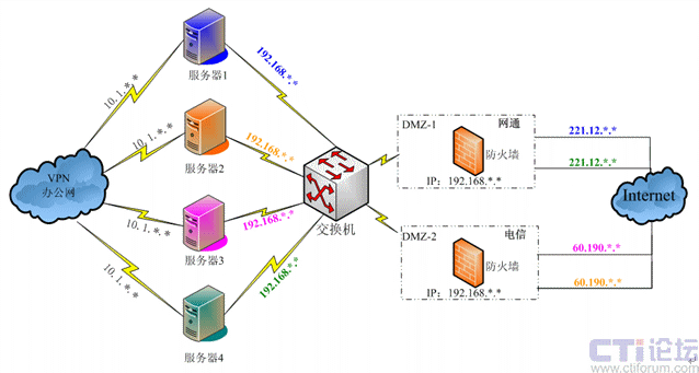系統(tǒng)平臺(tái)采用集群化部署,實(shí)現(xiàn)跨網(wǎng)絡(luò)分布式,從而在應(yīng)用中實(shí)現(xiàn)南北網(wǎng)通電信的互聯(lián)互通,以及專(zhuān)網(wǎng)用戶(hù)的無(wú)障礙接入,實(shí)現(xiàn)方式如下圖所示: