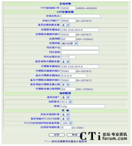 圖1 SIP協(xié)議參數(shù)設置圖例