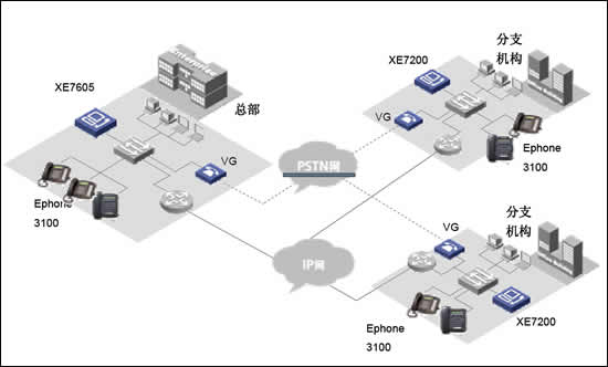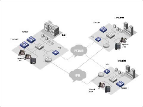 華為三康的XE7000IP語音解決方案是為企業(yè)提供融合的通信解決方案,在同一網(wǎng)絡(luò)上融合語音、數(shù)據(jù)和視頻信息,以滿足其日益增長的企業(yè)通信的要求從而解決了現(xiàn)代企業(yè)面對的傳統(tǒng)PBX語音服務(wù)和IP網(wǎng)絡(luò)數(shù)據(jù)服務(wù)分離問題。華為三康的XE7000IP語音解決方案構(gòu)建在企業(yè)現(xiàn)有IP數(shù)據(jù)網(wǎng)絡(luò)之上,以集中式管理方式提供企業(yè)全網(wǎng)范圍內(nèi)的呼叫控制以及管理,業(yè)務(wù)控制和信令分離使得用戶在管理上更加簡單透明,極大的節(jié)省了日常維護(hù)費(fèi)用和降低了維護(hù)難度。并使得客戶可以在任意地方實(shí)現(xiàn)IP語音數(shù)據(jù)接入,使得企業(yè)分布式辦公的不再因為物理空間隔離而無法實(shí)現(xiàn)。