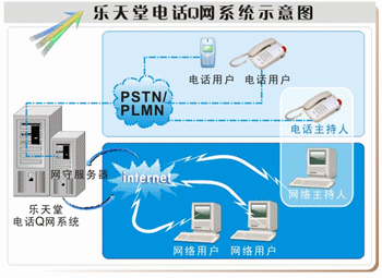 電話Q網融入Web及IP技術,以樂天堂自主研發(fā)的網間即時通訊軟件"Skytalk IM(天語通)"為基礎來實現(xiàn)網絡用戶和電話用戶的聊天互動的。