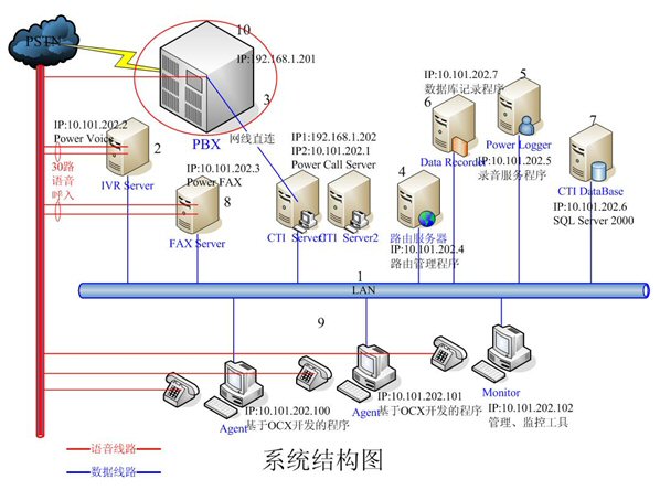良好的網(wǎng)絡(luò)是呼叫中心良好運行的必要條件,因此PCS推薦服務(wù)器之間的連接為100M網(wǎng)絡(luò),坐席PC與服務(wù)器之間的連接為10M即可。