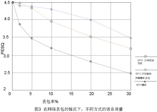 理想的網(wǎng)絡(luò)情況是所有發(fā)送的語音報文都能夠被接收端正常接收。但是IP報文在網(wǎng)絡(luò)上傳遞時,網(wǎng)絡(luò)的個別處理節(jié)點可能會出現(xiàn)處理能力不夠或者帶寬受限制的情況,部分報文可能會被丟掉。雖然IP網(wǎng)絡(luò)上有一些機制可以在報文丟失的時候重傳丟失報文,但是對實時性要求很高的話音數(shù)據(jù)并不能使用這些機制。
