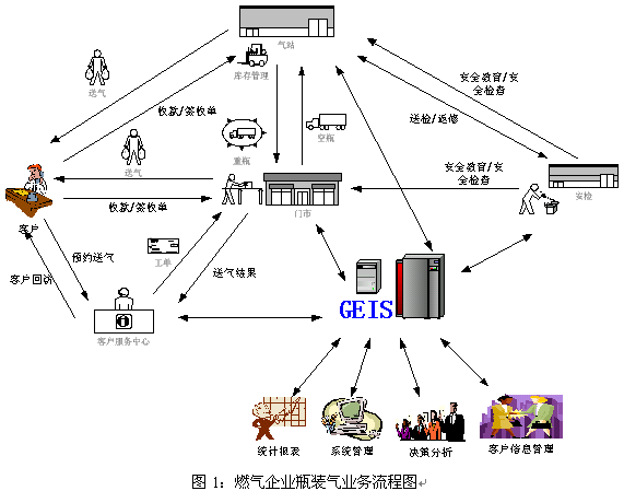 GEIS燃?xì)膺\(yùn)營(yíng)管理信息系統(tǒng)的應(yīng)用是企業(yè)的長(zhǎng)期發(fā)展的驅(qū)動(dòng)力,它是一套以客戶服務(wù)接觸中心為龍頭、以運(yùn)營(yíng)生產(chǎn)流程管理為龍身、以經(jīng)營(yíng)分析為龍尾的閉環(huán)信息處理系統(tǒng)。它由客戶服務(wù)中心子系統(tǒng)、門(mén)市業(yè)務(wù)子系統(tǒng)、氣站管理子系統(tǒng)、安全搶修平臺(tái)和管理與集成模塊組成。實(shí)踐的事實(shí)告訴我們,它起到保持客戶忠誠(chéng)度、提升企業(yè)品牌影響力、提高業(yè)務(wù)運(yùn)作效率、加快業(yè)務(wù)經(jīng)營(yíng)決策和促進(jìn)企業(yè)持續(xù)發(fā)展的作用。