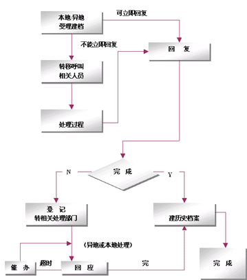 整個(gè)網(wǎng)絡(luò)采用只在集中受理中心設(shè)立一個(gè)集中監(jiān)控系統(tǒng),負(fù)責(zé)監(jiān)控全網(wǎng)的客戶業(yè)務(wù)、服務(wù)、技術(shù)支持和投訴等等業(yè)務(wù),該系統(tǒng)基于事件管理的思想,提供包括創(chuàng)建、解決、分配、反饋、跟蹤、回訪等節(jié)點(diǎn)在內(nèi)的閉環(huán)處理模式。例如系統(tǒng)可以根據(jù)客戶反映問題的時(shí)間以及緊急程度,按照系統(tǒng)約定的處理時(shí)限對(duì)處理過程實(shí)時(shí)跟蹤和記錄,當(dāng)處理超時(shí)時(shí)回自動(dòng)給出報(bào)警信息,提示相關(guān)的操作人員及主管人員。同時(shí)根據(jù)約定還可以將受理的問題按照約定的方式自動(dòng)發(fā)送到相關(guān)的處理部門,由處理部門進(jìn)行處理。