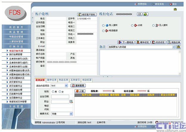 TM Pro電話營銷系統(tǒng)是一套能根據(jù)客戶需求量身訂做,且擁有完善的接口及方便的操作界面,又能提供完整功能的電話營銷外撥管理系統(tǒng)。功能方面,TM Pro電話營銷系統(tǒng)除了提供名單匯入、分派及電訪人員的撥打處理等基本功能外,還能提供人事管理、系統(tǒng)管理及報表中心等功能,使得整個系統(tǒng)架構(gòu)更加完整,也更符合電話營銷在市場營銷策略和內(nèi)部營運管理上的需求;效果方面,TM Pro電話營銷系統(tǒng)的設(shè)計融入了開發(fā)人員多年在電話營銷方面的經(jīng)驗,使該系統(tǒng)不僅能提升電話營銷人員的工作效率,更能提高電話營銷人員的銷售產(chǎn)值,也可藉由此系統(tǒng)廣泛地收集客戶的消費習(xí)性及背景數(shù)據(jù),以作為未來客戶關(guān)系管理及銷售的重要參考依據(jù)。目前,TMPro 已在多家知名金融機構(gòu)應(yīng)有,并得到用戶的好評。