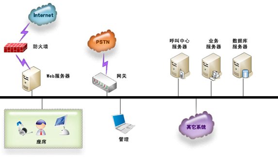 用戶層是呼叫系統(tǒng)與系統(tǒng)使用者之間的聯(lián)系層。工作人員可以通過瀏覽器進入系統(tǒng)的業(yè)務部分進行工作,處理相應事務;用戶可以通過電話打入系統(tǒng)的呼叫中心部分,獲得自動或人工服務,也可以通過Email、短信、傳真等方式與系統(tǒng)聯(lián)系;同時,系統(tǒng)可以進行電話外撥,聯(lián)系相關部門或進行主動服務。