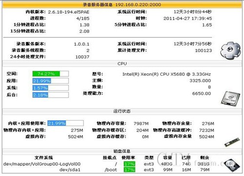 可通過MVB2000監(jiān)控運行狀態(tài),資源使用情況,如下圖: