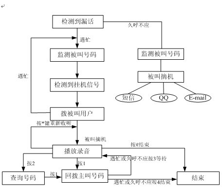 固話漏話業(yè)務(wù)是基于目前固網(wǎng)上存在著的大量遇忙呼叫和久呼不應(yīng)的現(xiàn)狀,通過(guò)漏話監(jiān)測(cè)設(shè)備實(shí)時(shí)監(jiān)測(cè)主叫用戶和被叫用戶的業(yè)務(wù)信息(如主被叫用戶的屬性、電話號(hào)碼、來(lái)電時(shí)間、是否已掛機(jī)等),并按照預(yù)定的業(yè)務(wù)邏輯和方式,提示用戶回呼原主叫用戶。通過(guò)這種方式,將外網(wǎng)的話務(wù)量轉(zhuǎn)移到本網(wǎng)內(nèi),從而提高業(yè)務(wù)收入。
