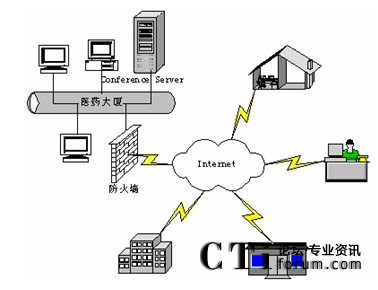 視頻會議服務器設置在上?偛浚ㄟ^電信的6M帶寬接入互聯(lián)網(wǎng),并配備有廣域網(wǎng)靜態(tài)IP地址。下屬生產(chǎn)基地和分支機構通過電信ADSL接入和光纖接入等方式接入互聯(lián)網(wǎng)。這些點能夠?qū)崿F(xiàn)網(wǎng)絡視頻會議通訊,進行音頻、視頻和數(shù)據(jù)的多方溝通。